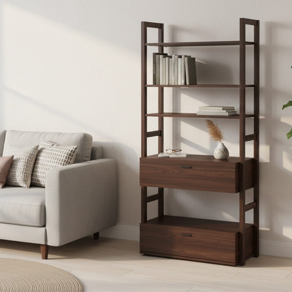 Функционални вариации: Комбиниране на отворени рафтове със затворени модули, вградено LED осветление или интегриране на работно място.
