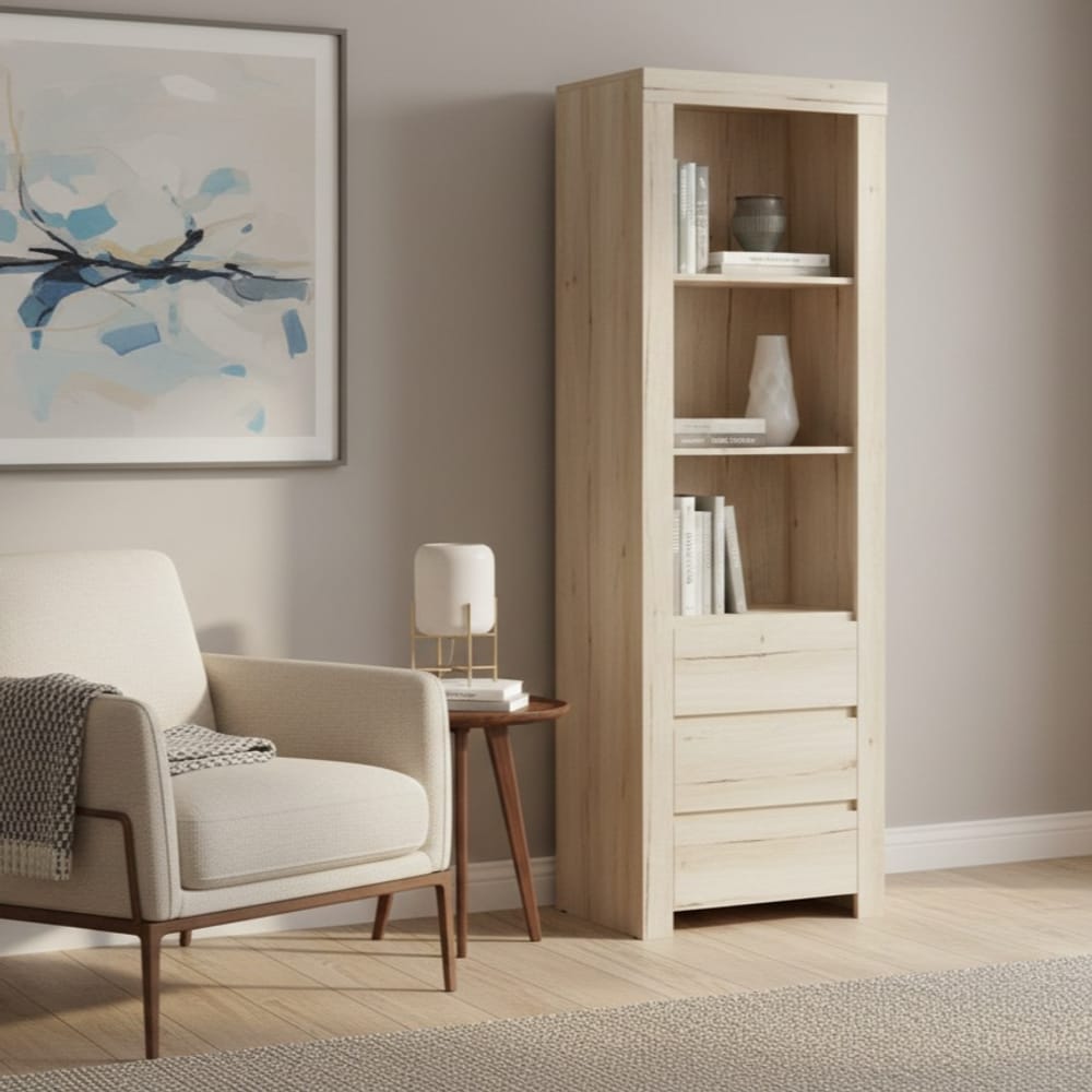 Естествен масив (Чам, Бук, Дъб): Най-високият клас материали. Етажерките от масивен дъб или бук са символ на дълголетие и здравина, докато чамът внася естествена мекота и уют.