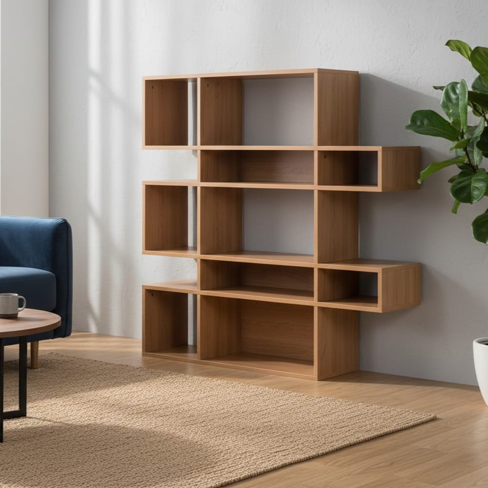 Скулптурни и органични форми: Етажерки с плавни криви, асиметрични разпределения и нестандартни ниши.