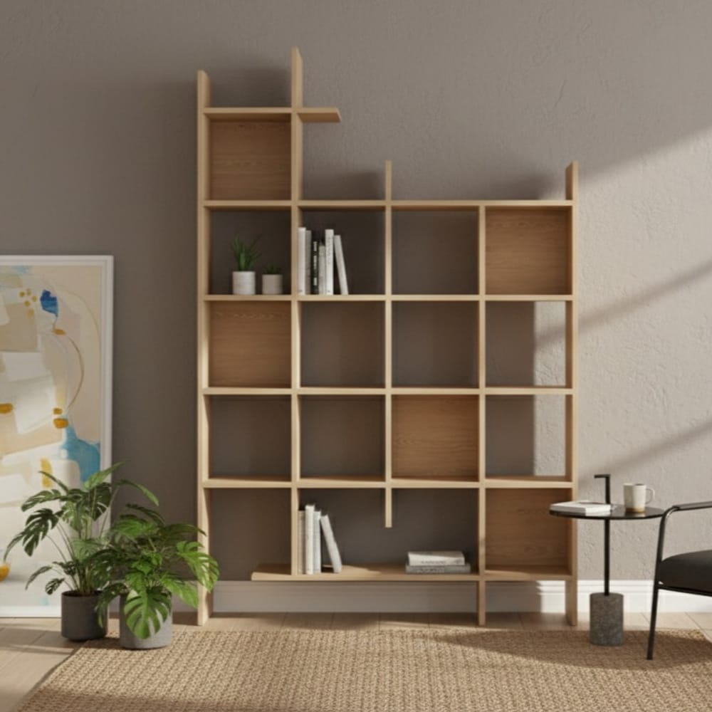 Размери по избор: Изработваме етажерки до милиметър, за да усвоим перфектно ниши, ъгли или цели стени във Вашия хол.
