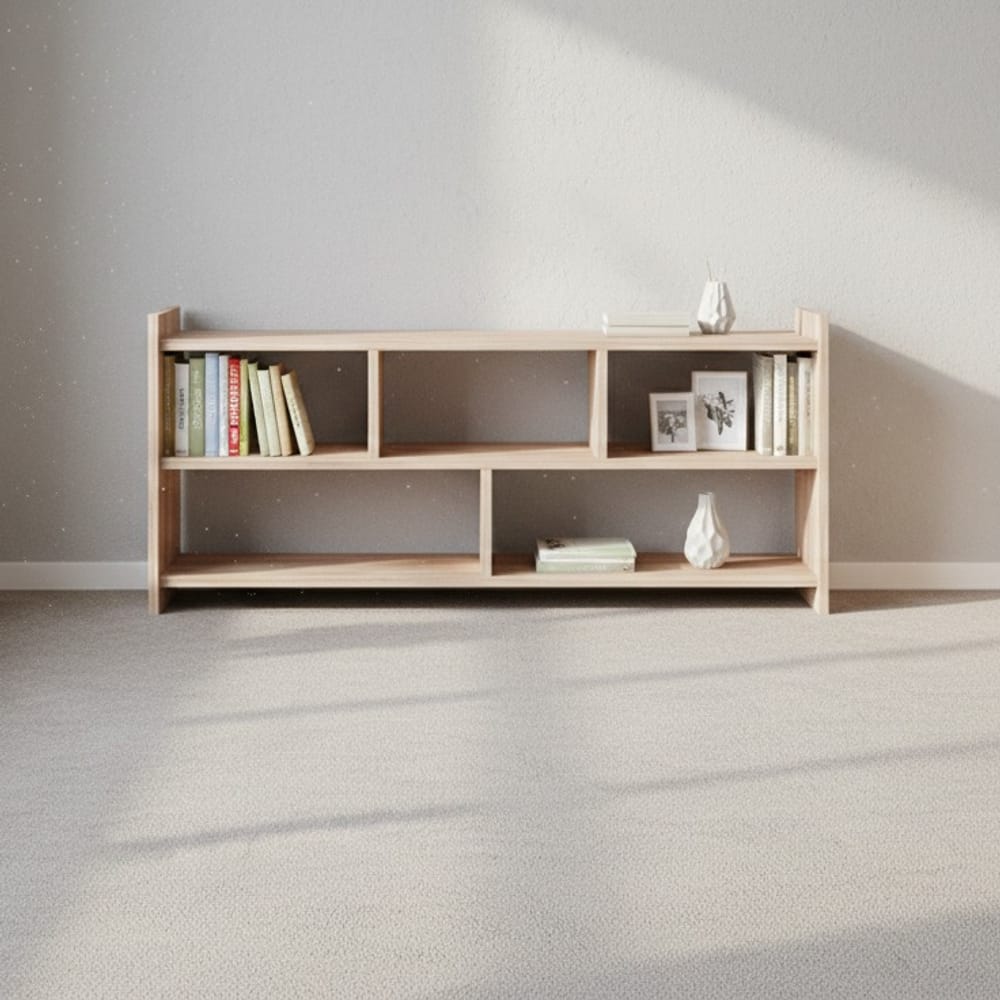 Зониране на офиса: Изработка на двустранно отворени етажерки, които служат за елегантно разделяне на работните места.