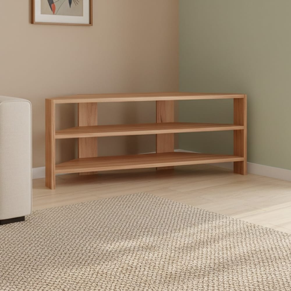 Естествен масив (Чам, Бук, Дъб): За тези, които търсят топлина и непреходен стил. Ъгловите етажерки от масивен дъб или бук са изключително стабилни и внасят доза аристократизъм.