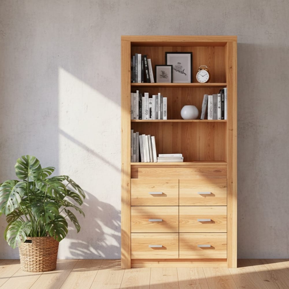 МДФ (MDF): Позволява изработката на библиотеки с изключително фин лакиран завършек (мат или гланц), без видими фуги и кантове.