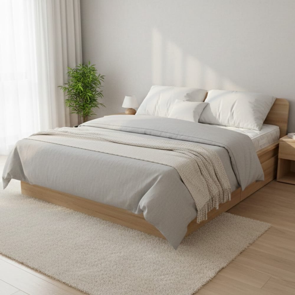 Масив Бук: Хомогенна и изключително здрава дървесина, подходяща за модерни и класически спални с голямо натоварване.
