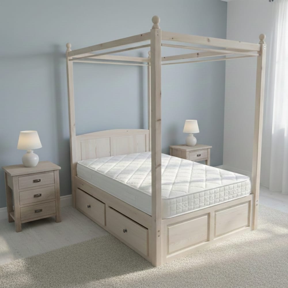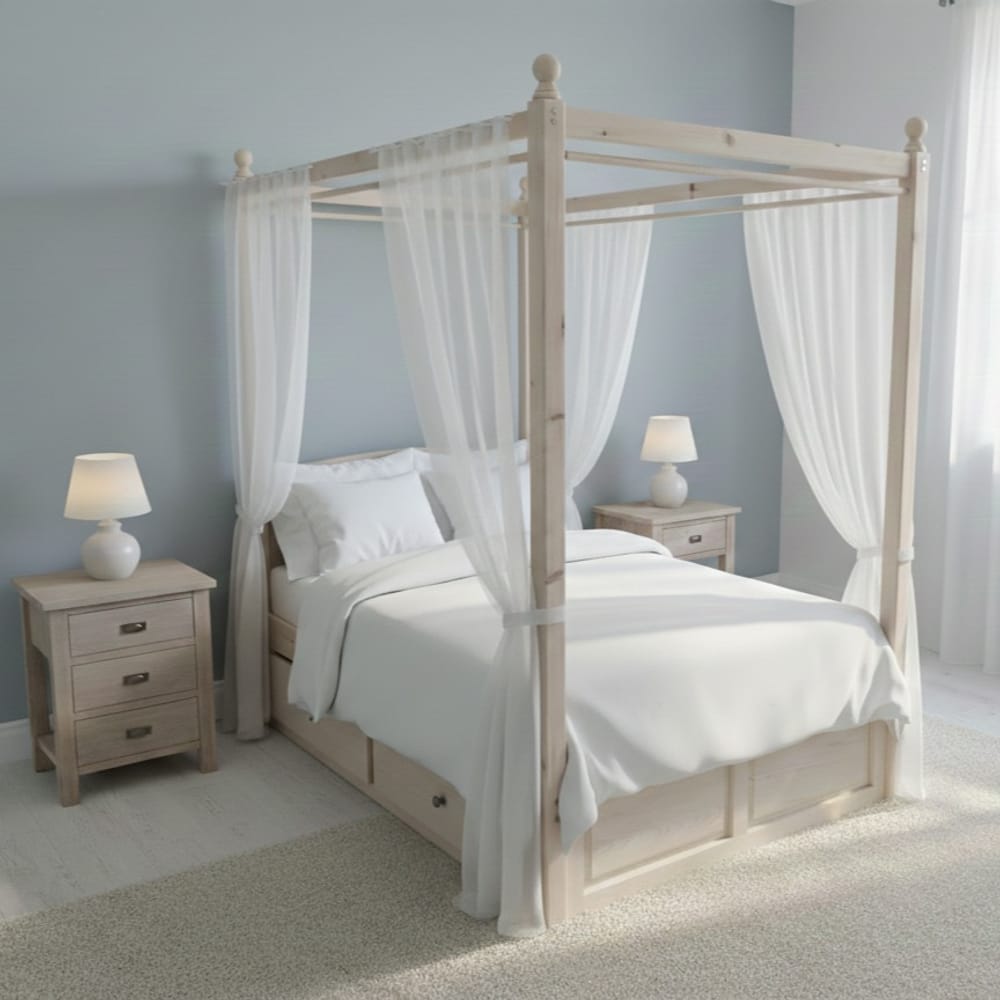 Избор на благородна дървесина: Масив Дъб: Най-предпочитаният материал за легла с балдахин заради своята тежест и невероятна здравина. Дъбът позволява прецизна обработка на детайлите и гарантира, че конструкцията няма да се деформира с времето.