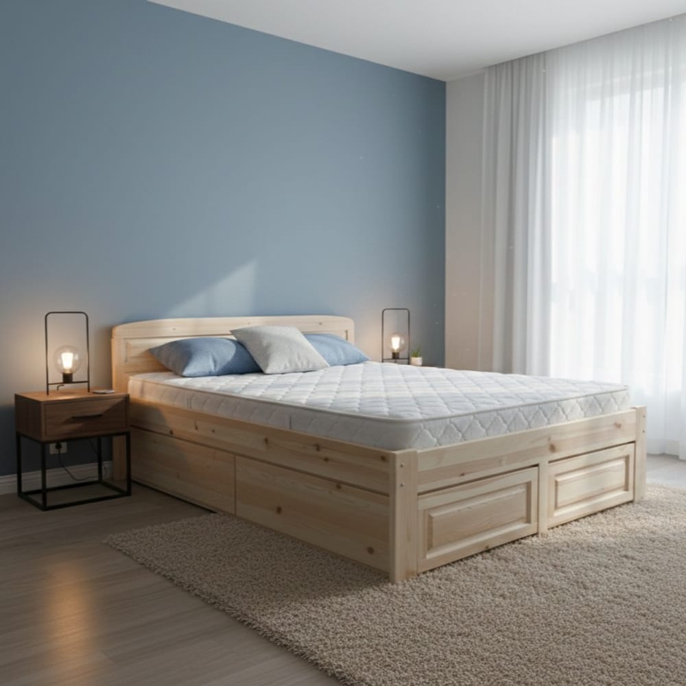 Масивна конструкция: Използваме подбран сух материал, който гарантира, че Вашата спалня ще запази геометрията си.