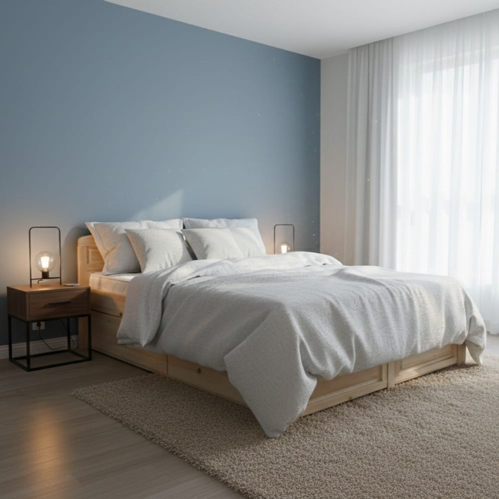 Видове конструкция: Легла с плътни царги до земята, модели на масивни крака или спални с вградени механизми за повдигане и подматрачно пространство.