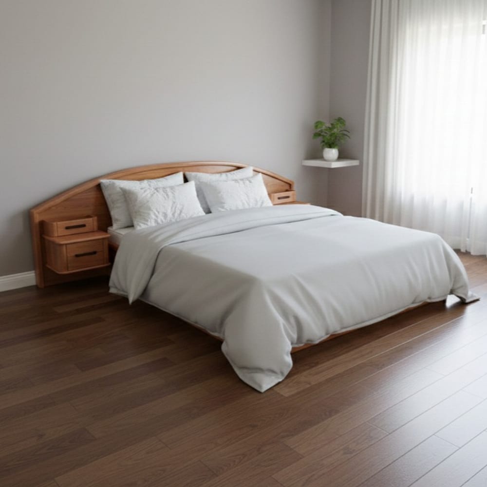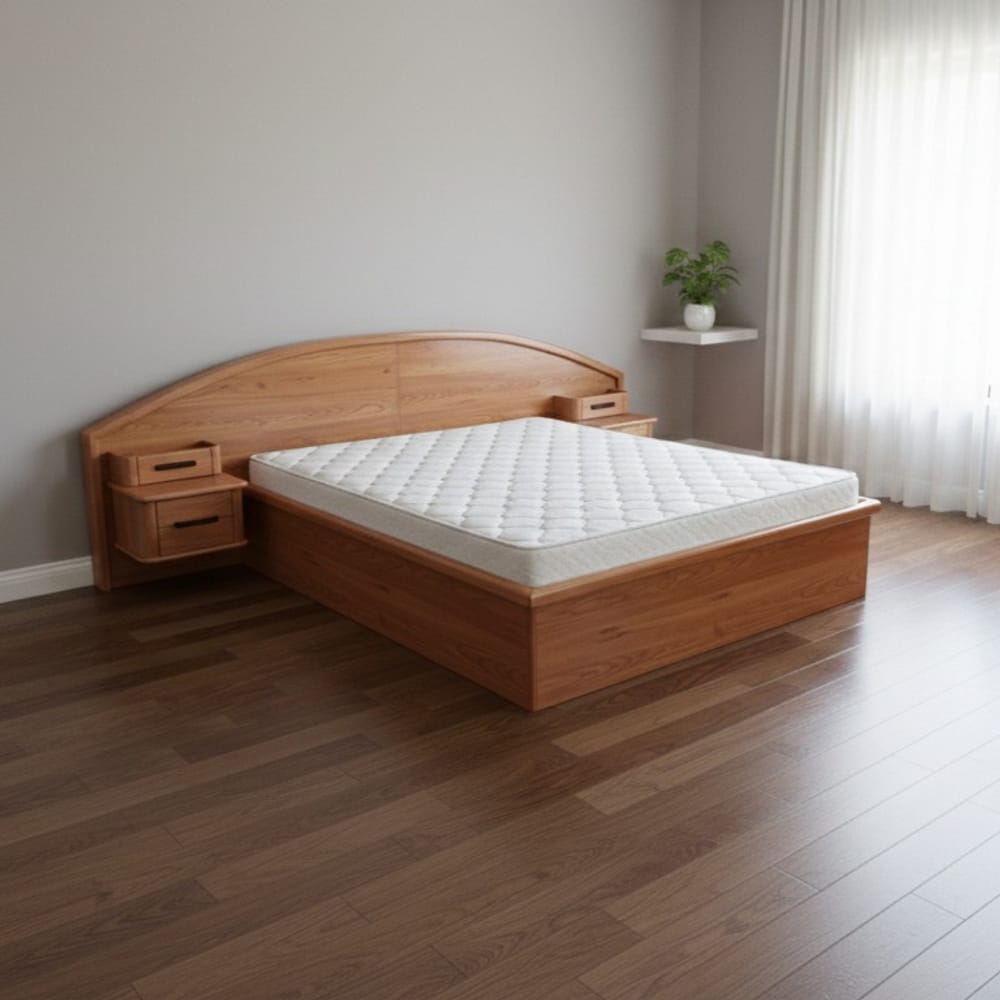 Масивен Дъб, Бук или Чам: Използваме ги за носещата рамка на леглото, за да гарантираме стабилност на цялата композиция, особено при конзолно окачване на шкафчетата.