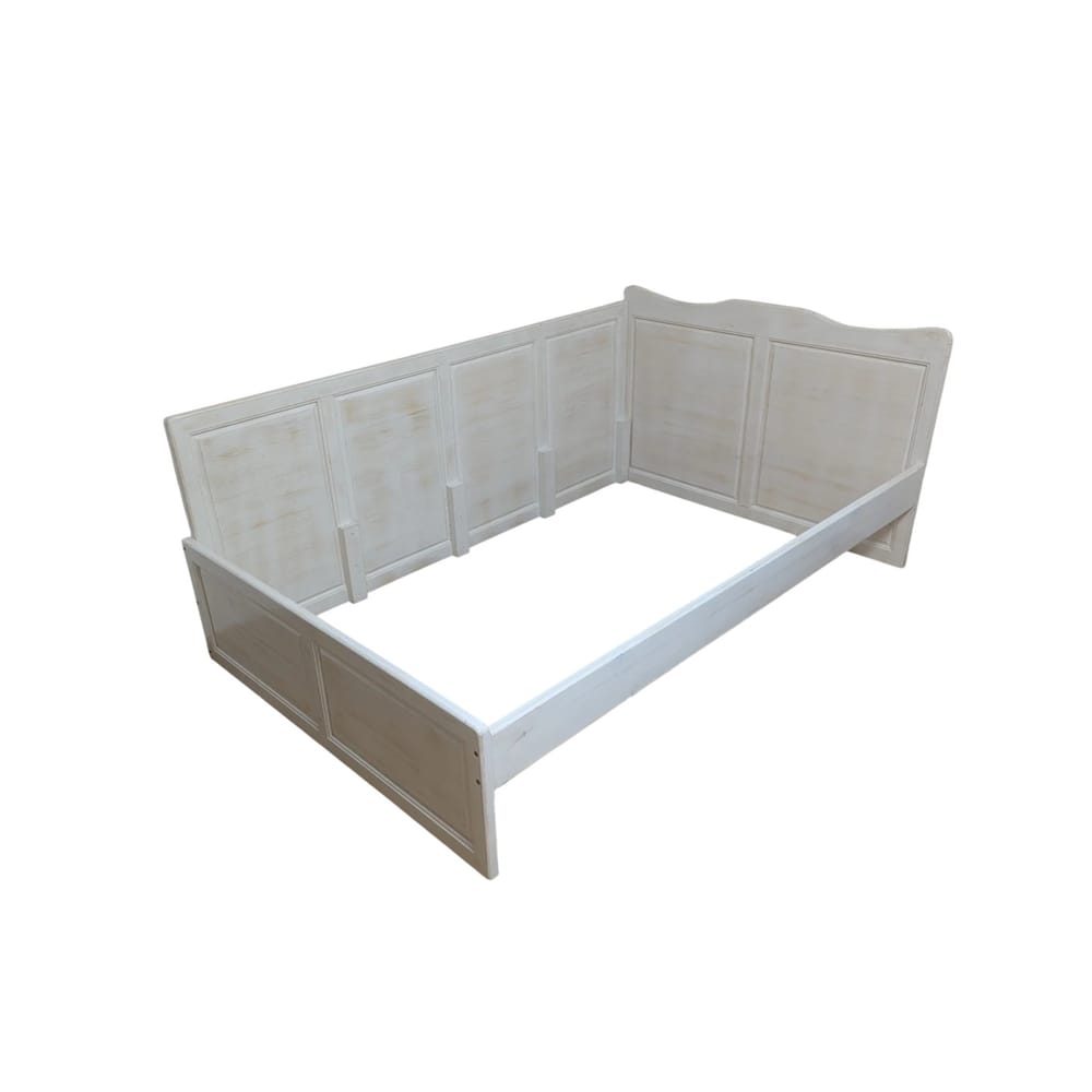 Специализирани бои и патини: Нанасяме висококачествена бяла боя на водна основа, последвана от ръчно обработена патина в ъглите и по релефите, за да създадем ефекта на естествено износване.