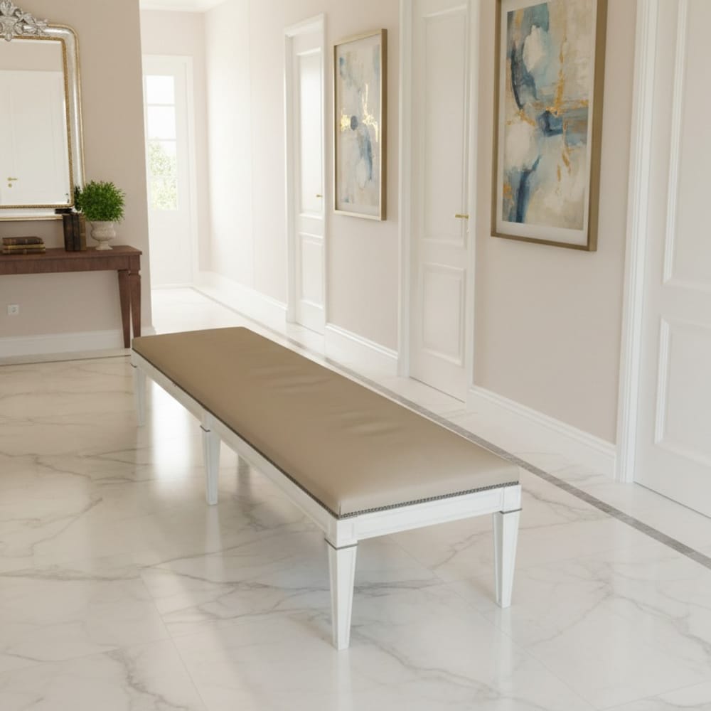 Премиум вариант: Пейка от масивен дъб или лакиран МДФ (цветове по RAL) с капитонирана седалка и висок клас дамаска.