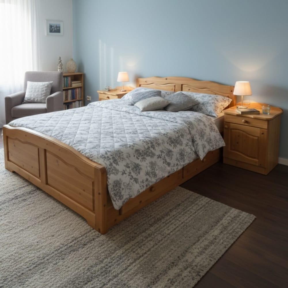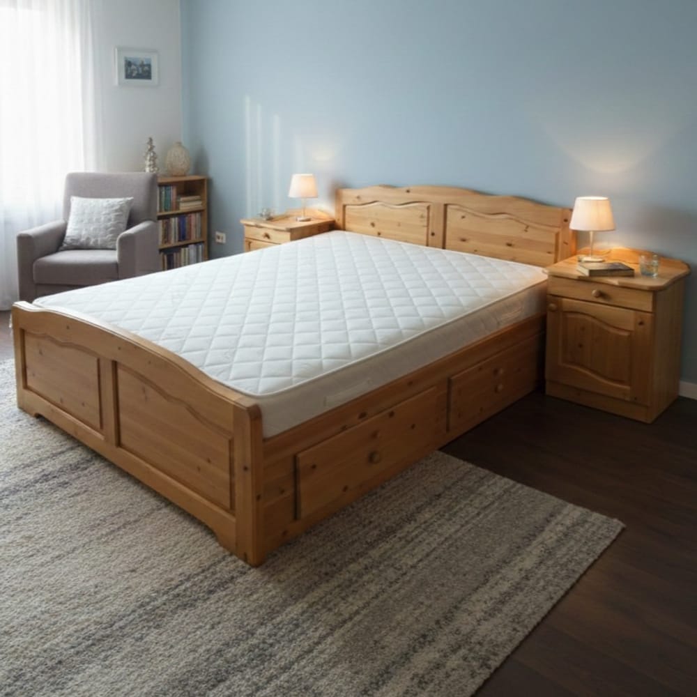 Легла по проект: С механизми за повдигане, вградени чекмеджета, тапицирани табли или масивни рамки от дъб, бук и чам.