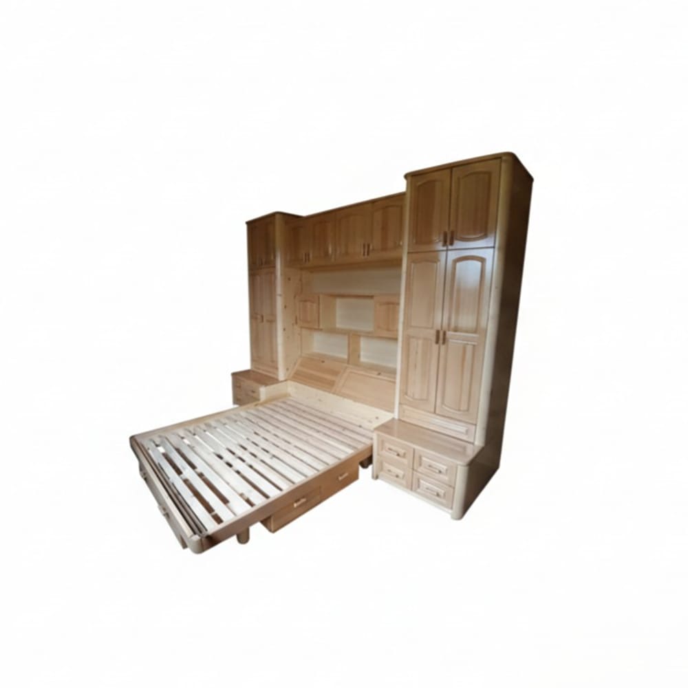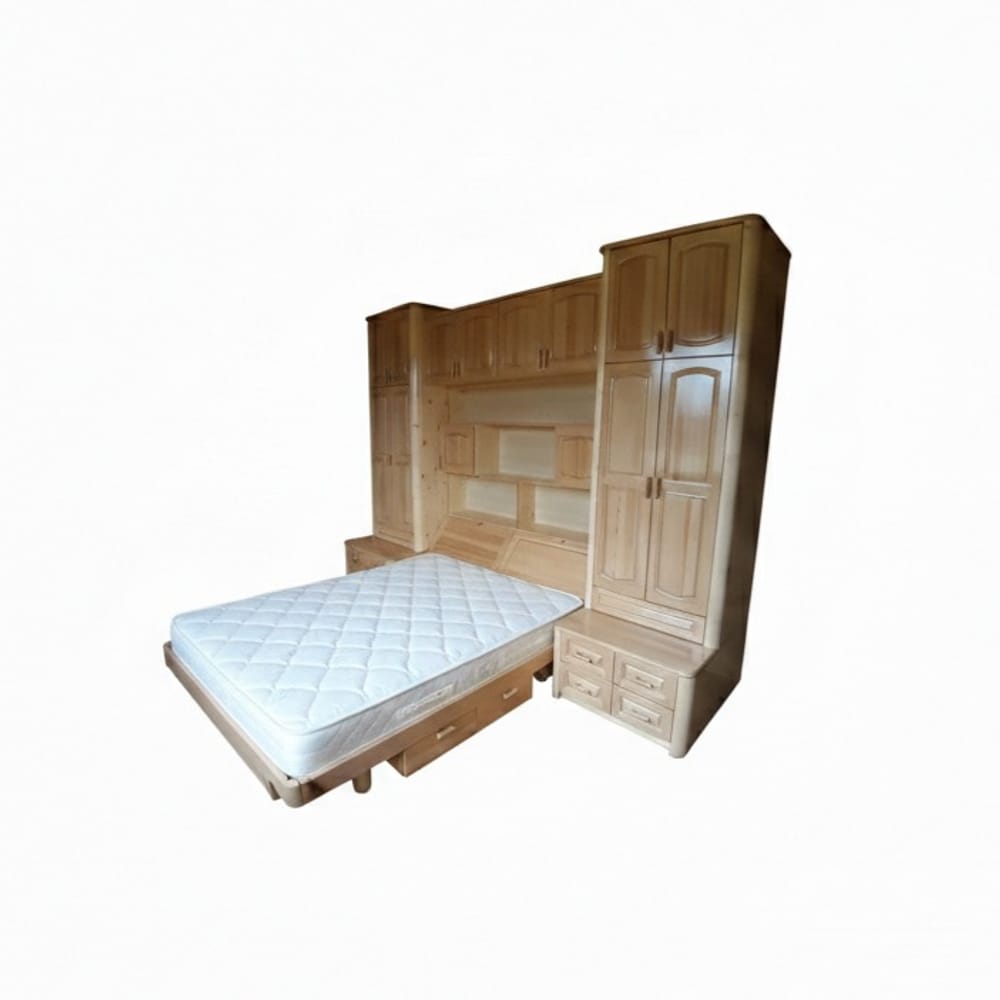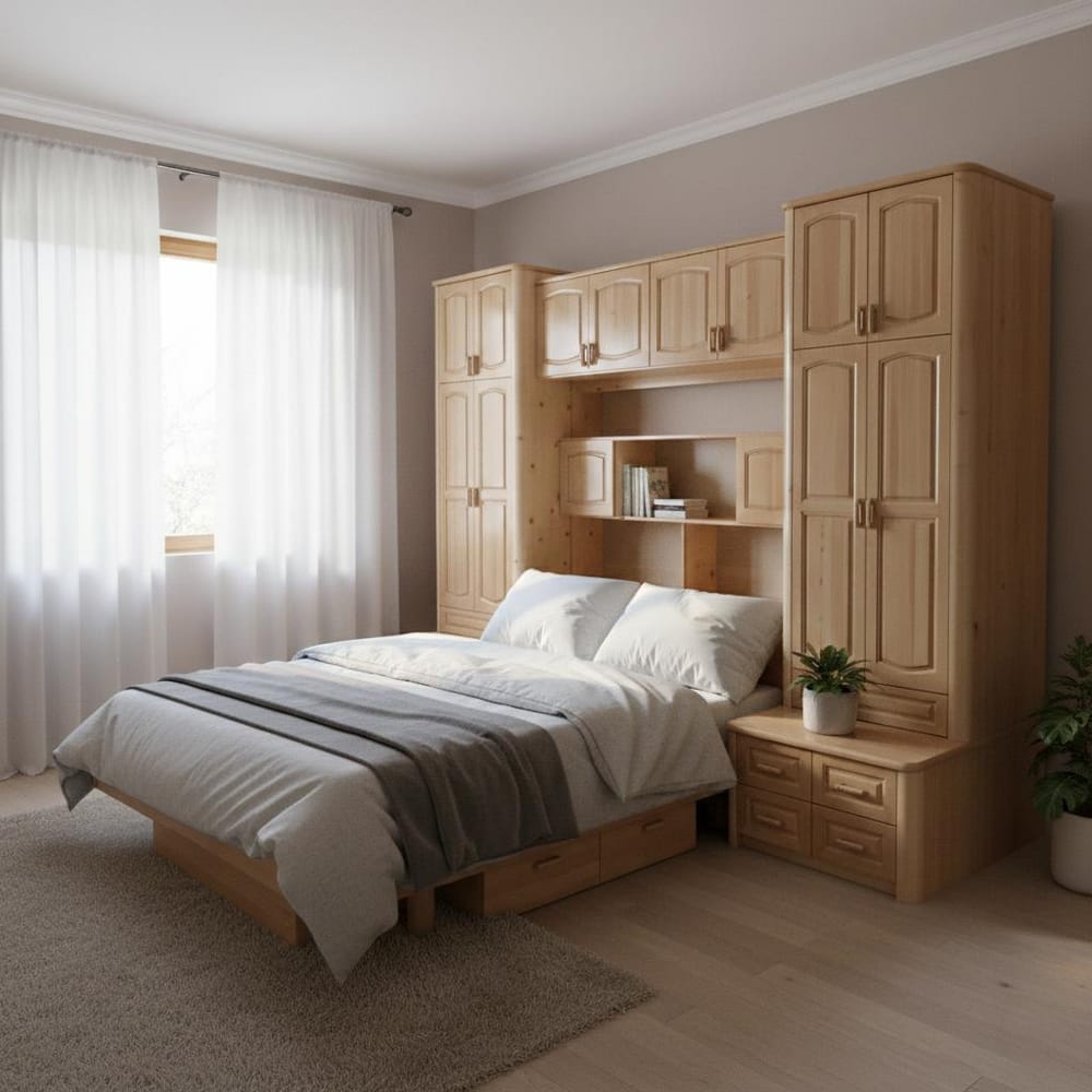 Допълнителни модули: Нощни шкафчета с меки механизми, скринове (комоди) за спално бельо и тоалетки, изработени в същия дизайн.